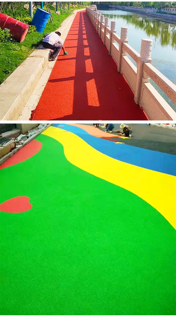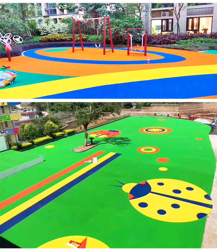 彩色EPDM颗粒和胶水混合而成。其主要成分是三元乙丙橡胶,三元乙丙橡胶具有良好的化学稳定性和较强的耐磨性、弹性、耐油性、耐老化性、抗紫外线性等。采用单层或者双层结构,彩色多样,且色彩柔和,颗粒状表层表层为环保型EPDM橡胶颗粒耐候性环保彩色颗粒,地面使用渗水的聚氨脂密封!优点:颜色和图案多样、具有弹性可伸缩性好、透水透气好。